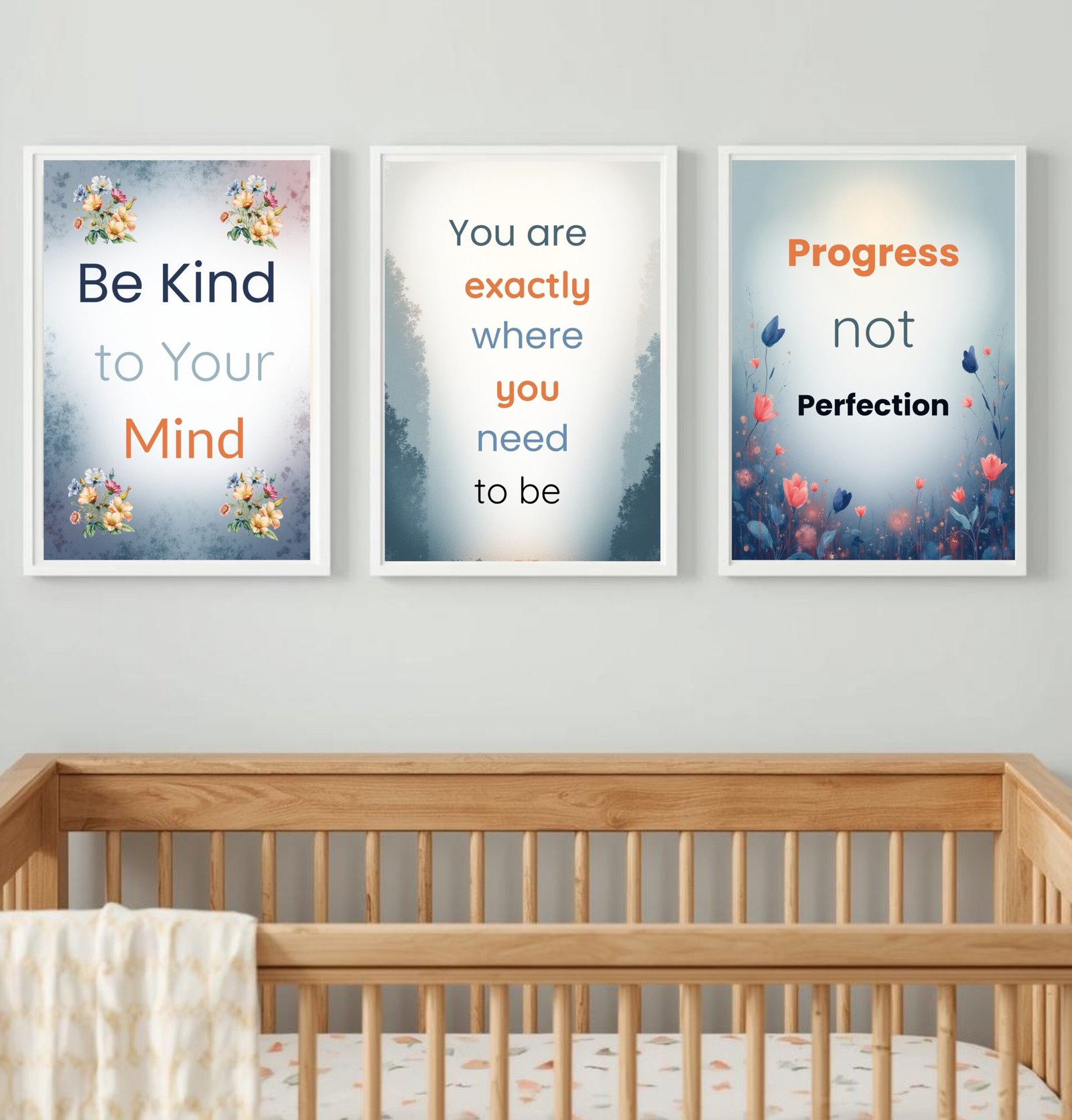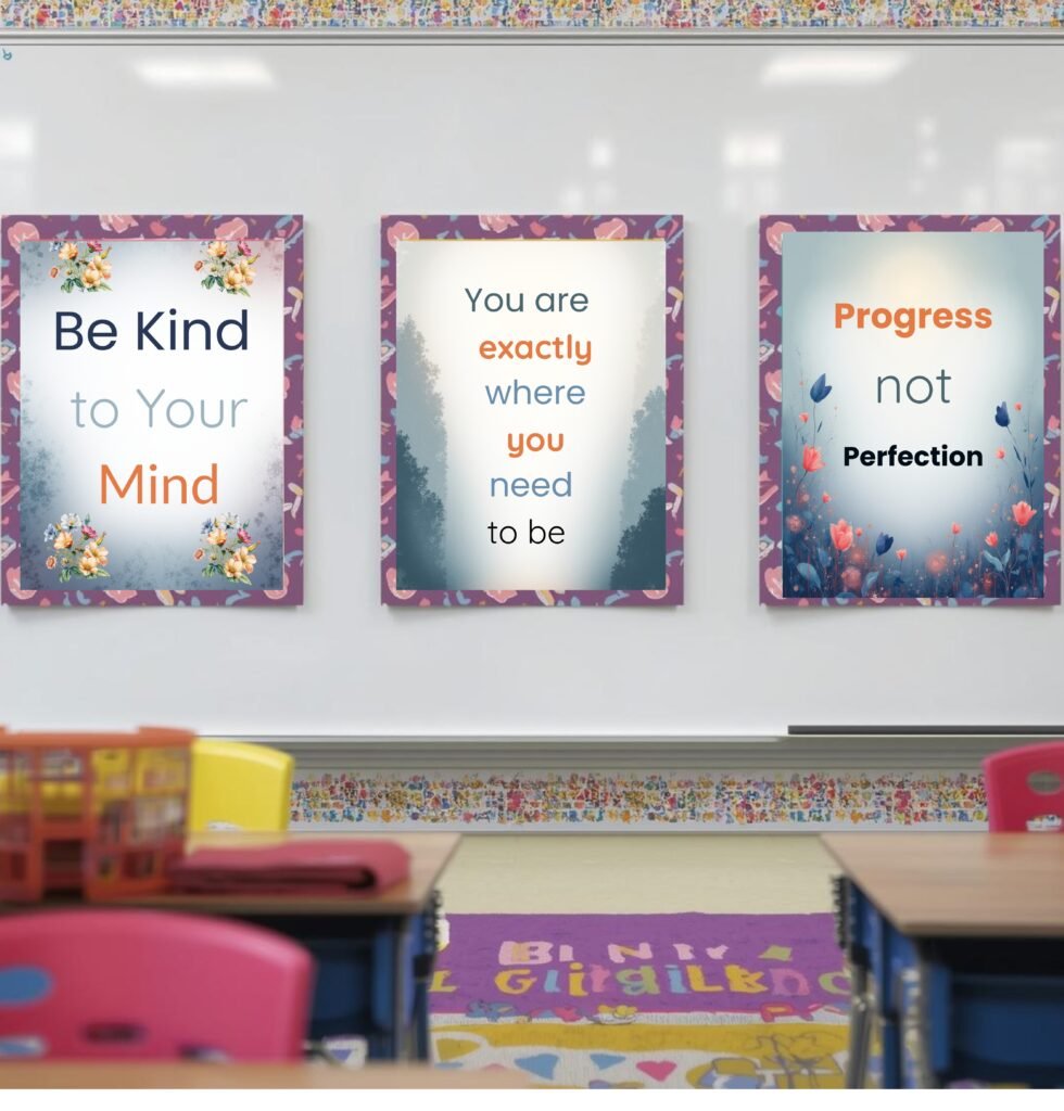 Set of 3 Mental Wellness Posters, Positive Affirmation Posters: Gentle Reminders for Mindfulness & Self-Care