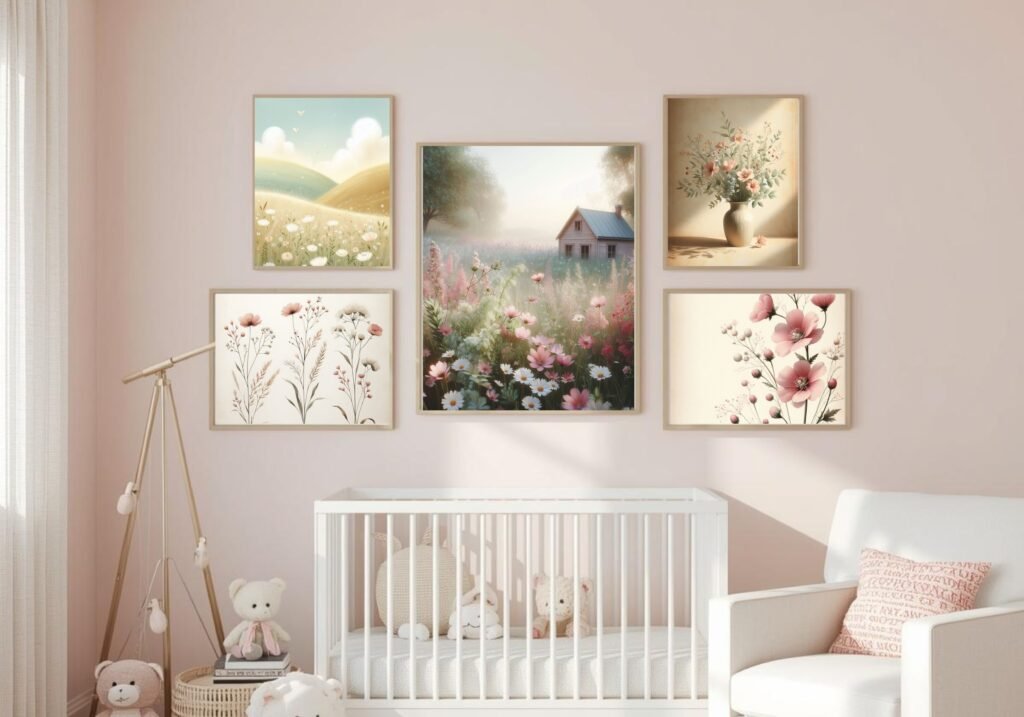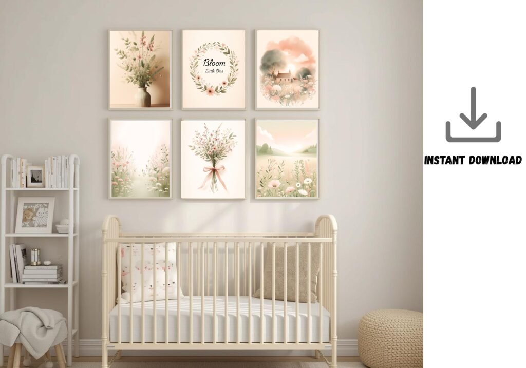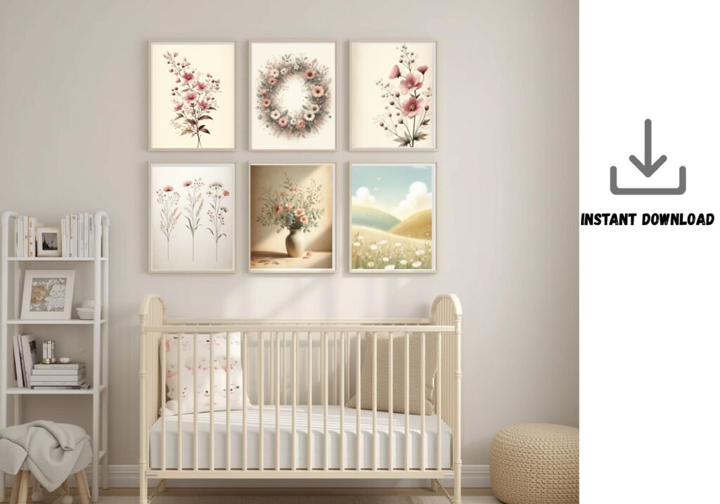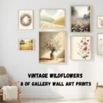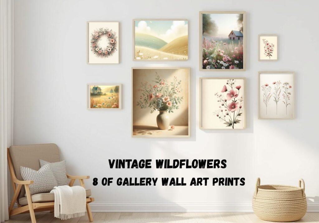 Vintage wildflower nursery prints set of 8, perfect for a sweet girls’ room or gallery wall. This printable floral art bundle is an instant digital download delivered via Google Drive as a ZIP file with high‑resolution JPGs in 6 popular sizes, ready to print and frame for personal use.